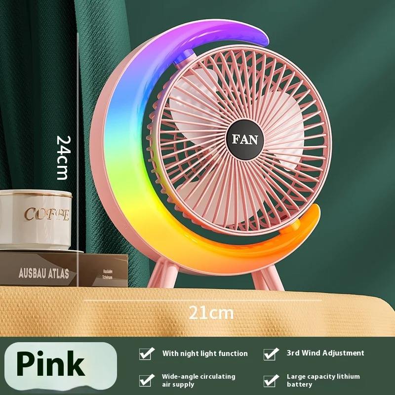 Ventilateur d'extérieur Moon Bay avec chargement USB, lumière nocturne colorée, ventilateur domestique à circulation d'air, forte puissance de ventilation
