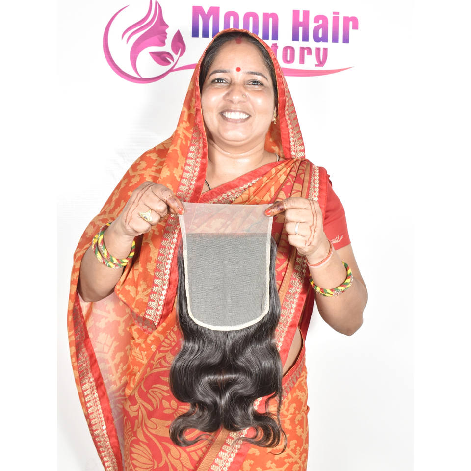 Moon Hair Direct factory Wholesale price raw Indian temple human Closure Bodywave soft silky naturally manufacturer By Export