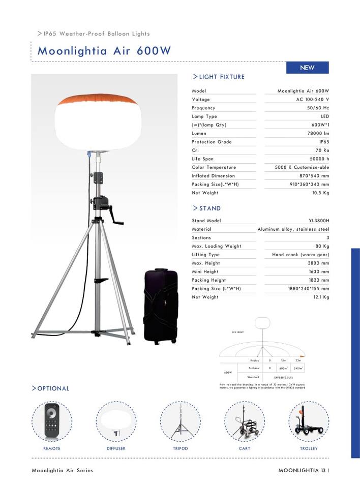 Moonlightia 78000 Lumens Tour d'éclairage de chantier LED blanche 600W pour éclairage nocturne, trépied durable 3,8 mètres IP65 CRI 80
