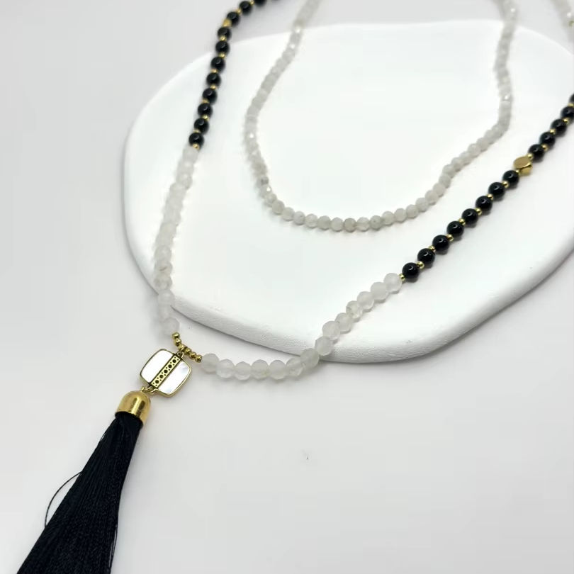 Moonriver Women's Fashionable Summer Chokers Necklaces Chic Black and White Stainless Steel Bead Strand Essential Chic Style
