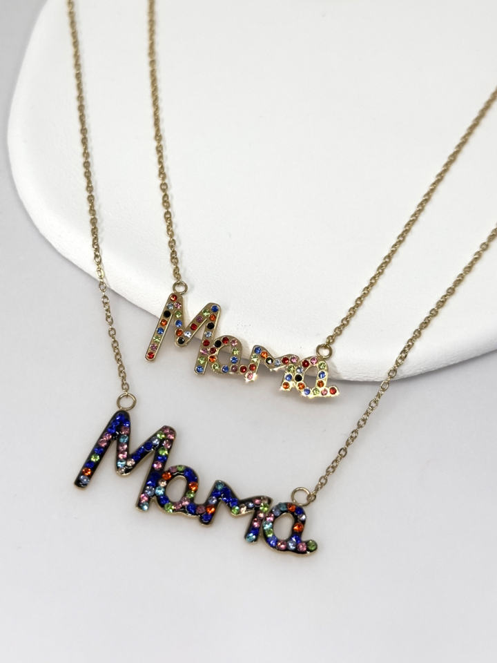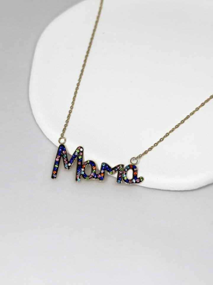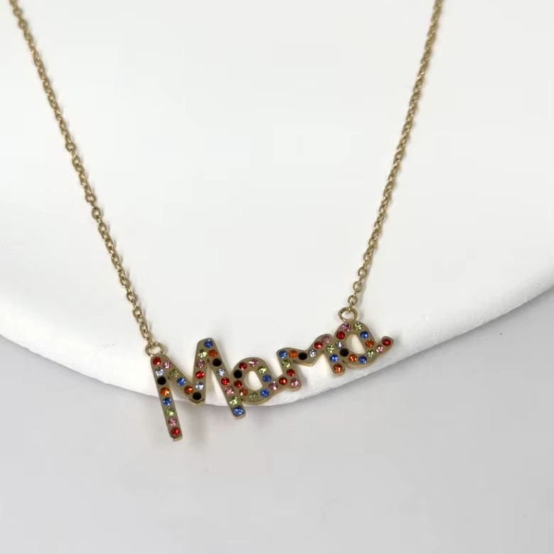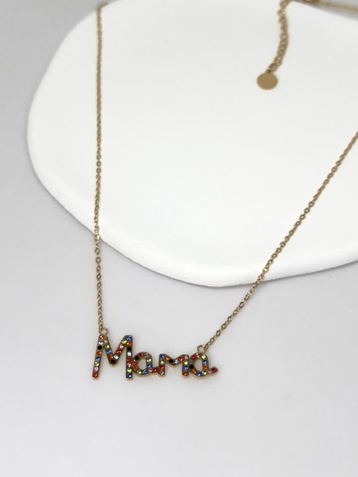 Moonriver Collier tendance en acier inoxydable pour femme avec de jolis diamants colorés Style simple Mama Design Cadeau parfait pour la fête des mères
