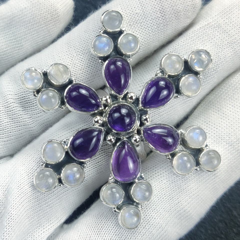 Keyword:925 Solid Sterling Silver Statement moonstone & amethystJewelry