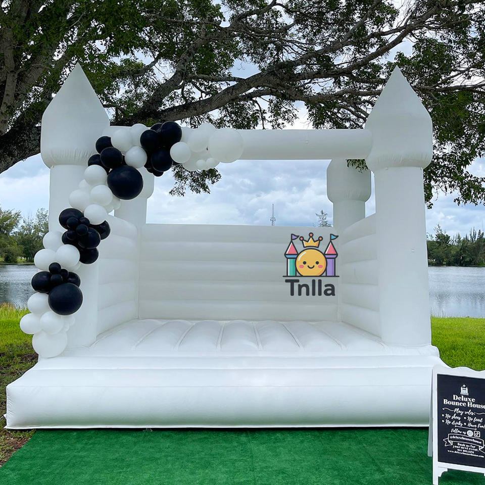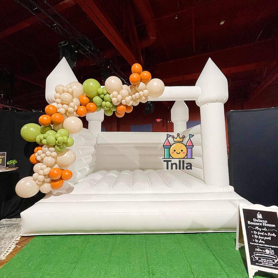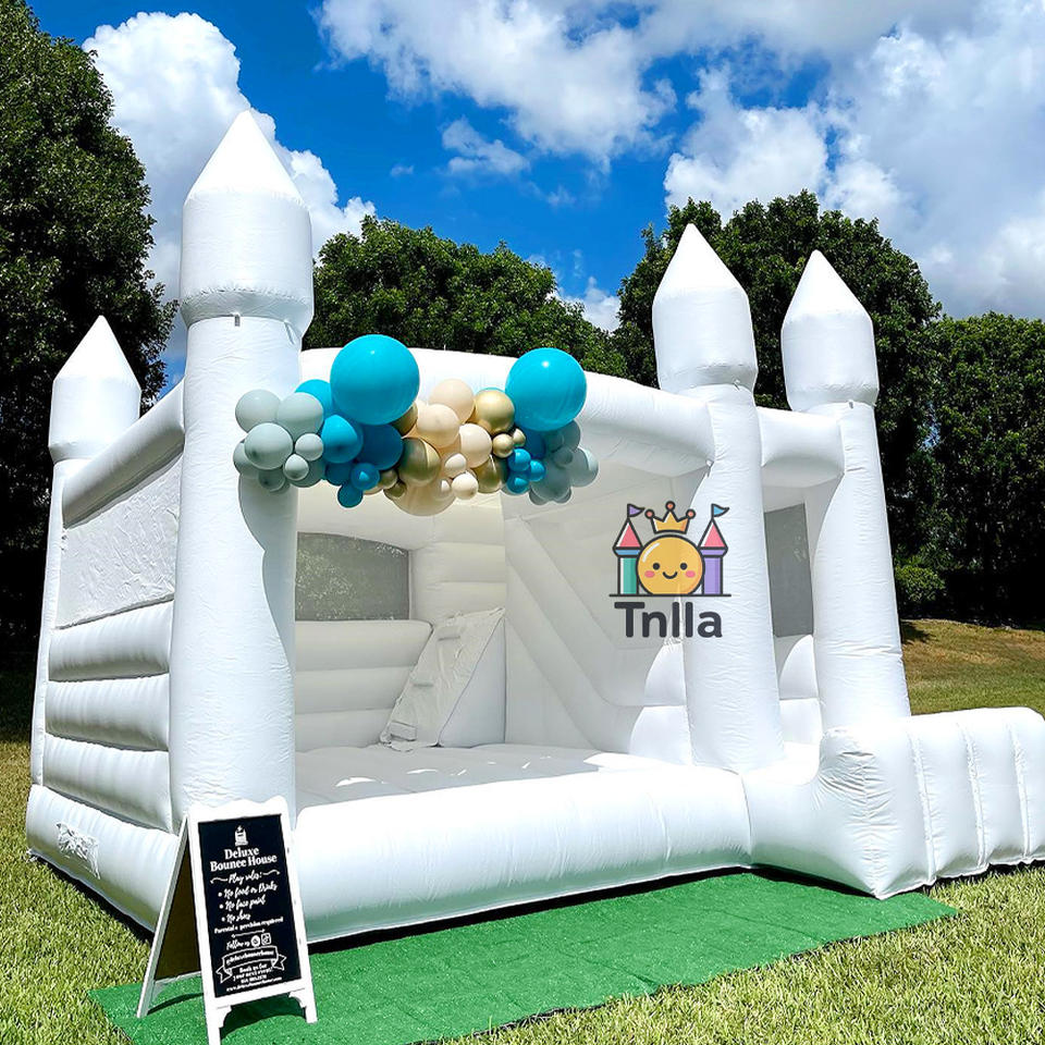 Trampoline gonflable Moonwalk Saut Château gonflable Ligne de saut PVC Blanc Maison de rebond de mariage avec toboggan