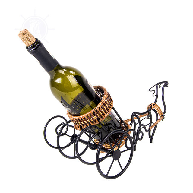 Porte-bouteille de vin en forme de calèche à cheval en métal