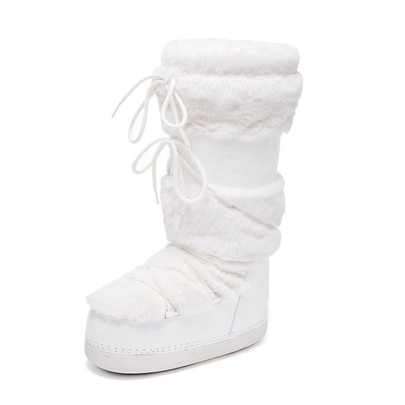Bottes de neige en tricot moelleux style Moot pour femme, à enfiler, nouveau modèle hiver 2025, avec isolation thermique en coton, bottines à cheville