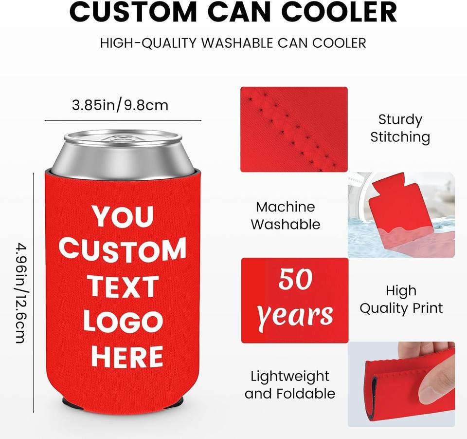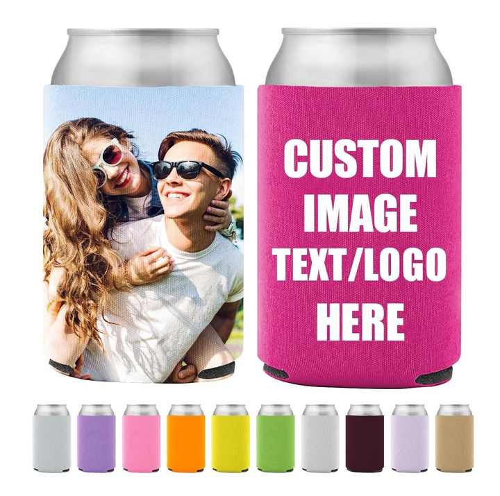 MOQ 100 pièces, image personnalisée, texte, logo pour anniversaire, mariage, fête d'anniversaire, porte-canettes isothermes personnalisés