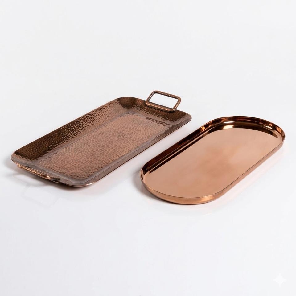 Plateau de service rectangulaire en aluminium martelé à la main, finition argentée, avec poignées, pour la maison et la cuisine.