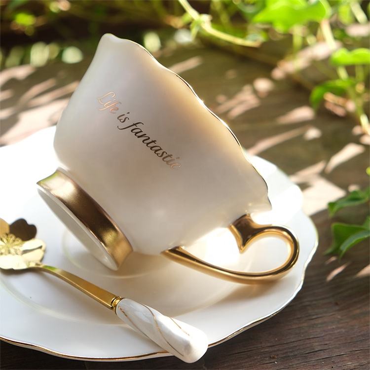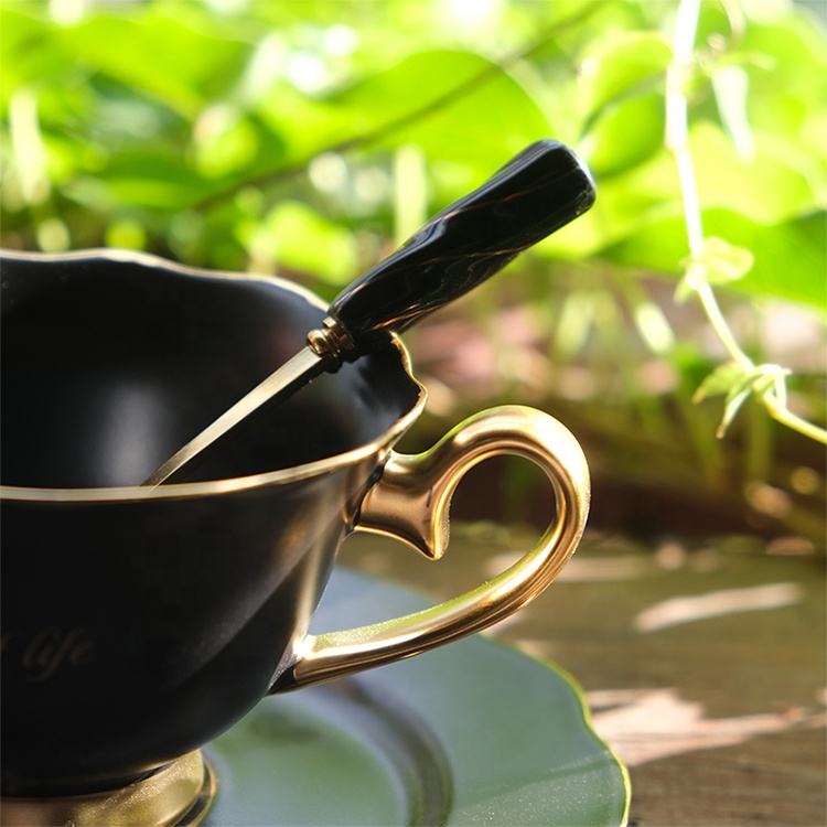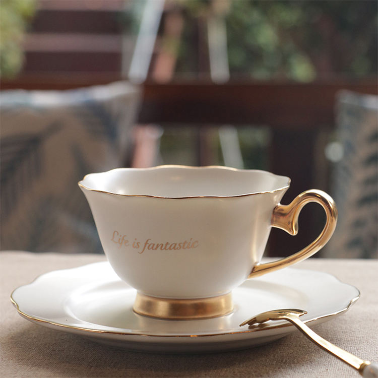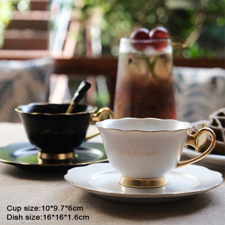 Morden Style Ceramic Cup Saucer Set Luxury Gold Rim Porcelain Espresso Cup and Saucer