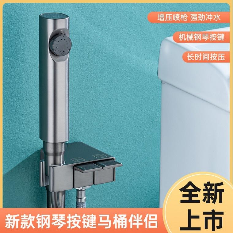Ensemble d'accessoires pour toilettes en forme de touches de piano, version argentée [Pistolet pulvérisateur ABS]