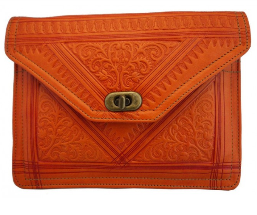Portefeuille marocain en cuir véritable pour les femmes avec serrure en orMode