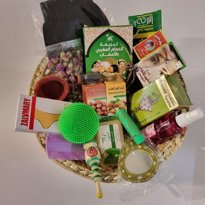 Coffret cadeau de spa marocain Hammam | Savon noir, Gant Kessa, Argile Ghassoul, Huile d'argan, Eau de rose, Pack exfoliant, Ensemble de luxe pour spa, Pro