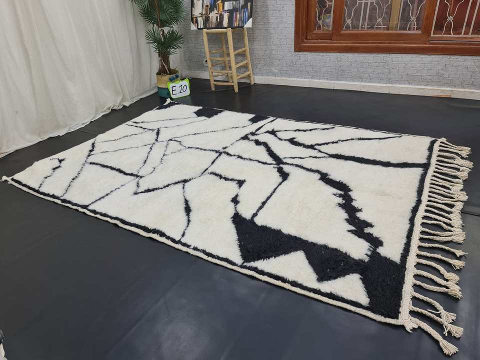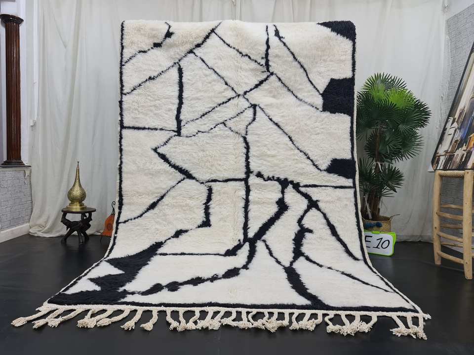 Tapis marocain fait main abstrait tapis marocain Teppish Marokko noir et blanc authentique tapis en laine pour la décoration intérieure