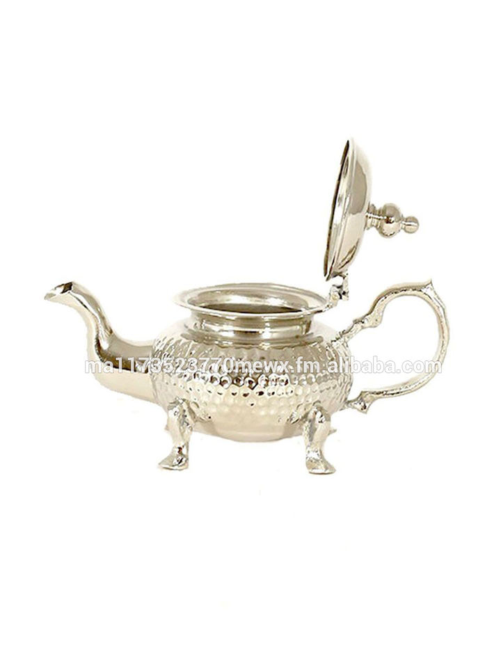 Moroccan Handmade Aluminum Tea Pot with Silver Plated Copper Carved Engraved Design for All Occasions and Gift