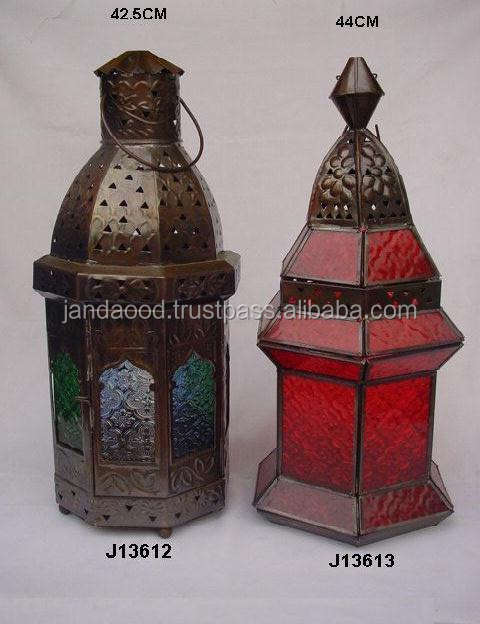 Lanterne en fer faite à la main, style marocain, avec finition en cuivre, avec verre rouge, décoration de maison pour fête, mariage, noël