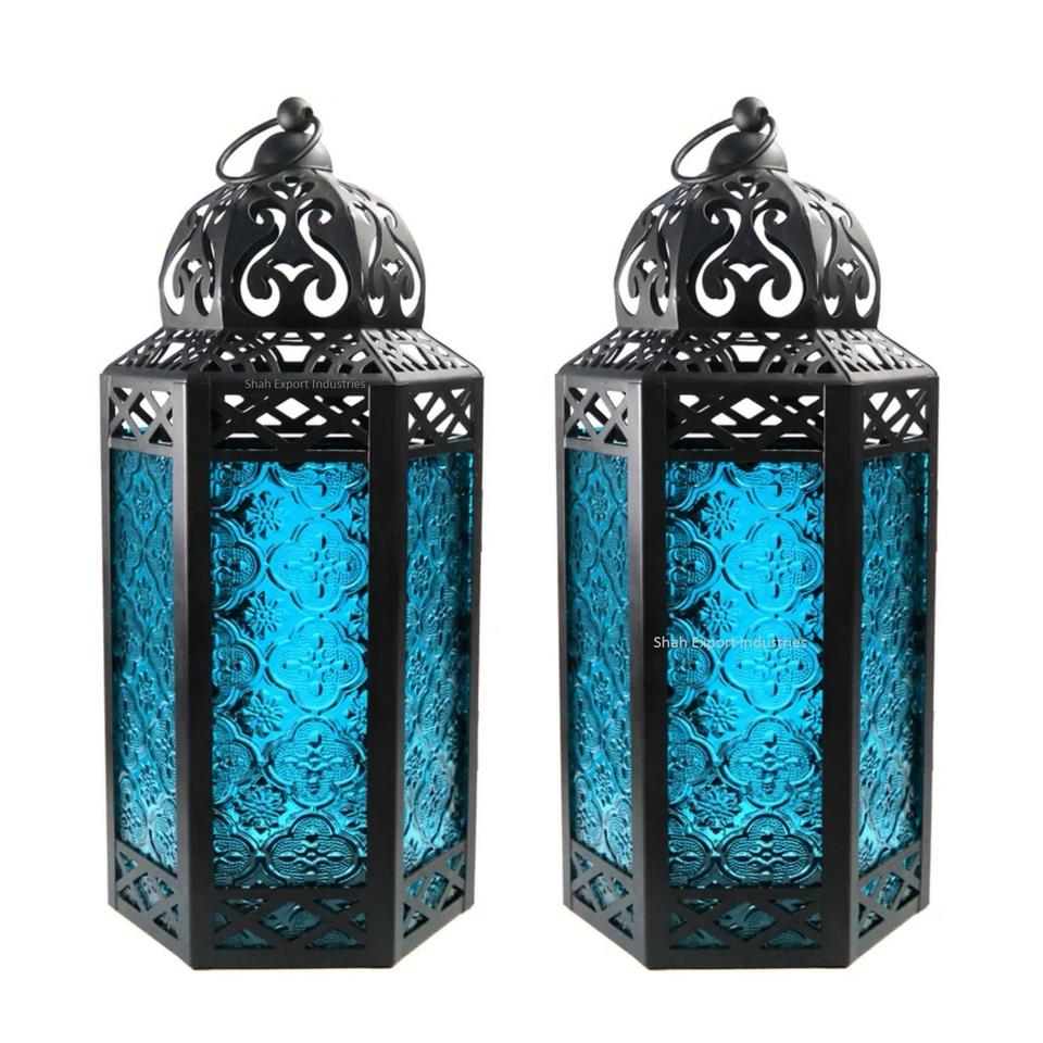 Lanternes à bougie marocaines en métal avec verre coloré design pour la maison et les lanternes de table décoratives de Noël