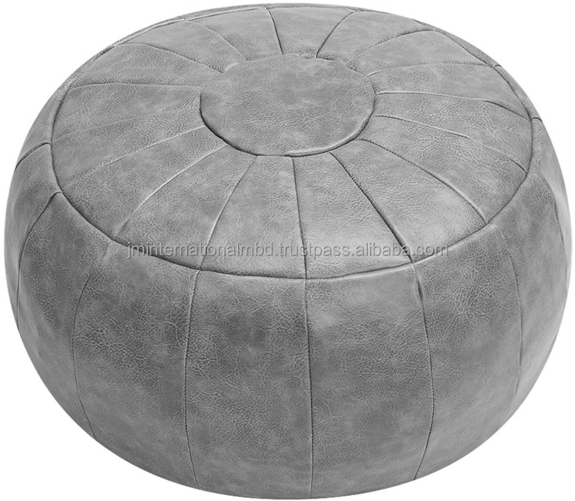 Pouf marocain en similicuir, tabouret ottoman avec housse amovible, pliable pour salon et salle à manger, design moderne