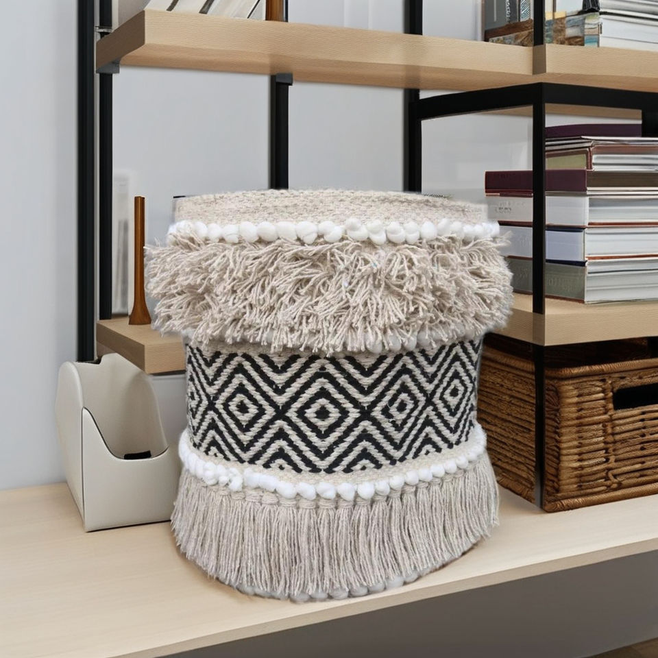 Vase de panier de rangement rond de style marocain avec design pliable écologique flexible en noir blanc en coton