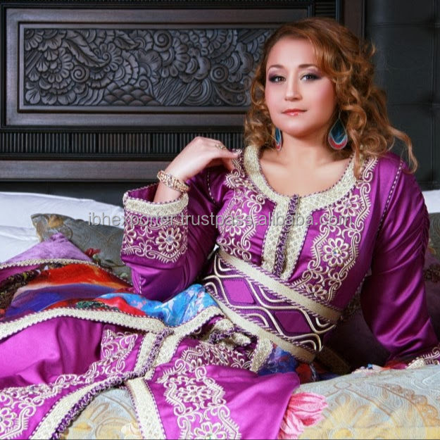 Moroccan Women Silk and Printed Fabric Caftan Beautiful Lace and Embroidery Work With Belt