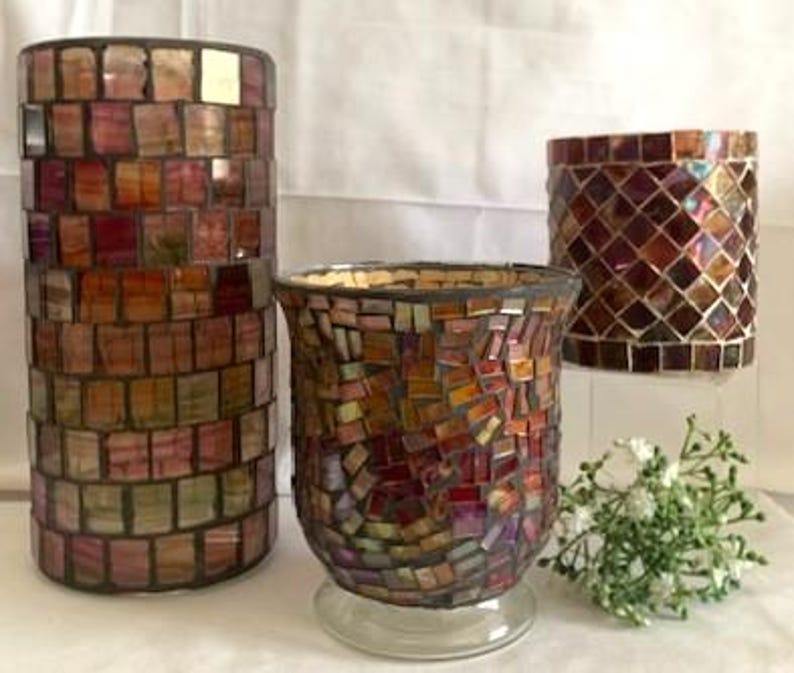 Mosaic Beeswax Votive and Tea Light Candle Holders Handicraft Modern Highly Scented Handmade for Home Decor