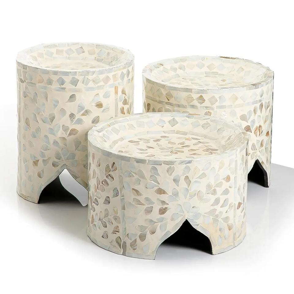 Mosaïque en os incrusté de motifs floraux plateau à chocolat support de plateau de service support de gâteau en nacre