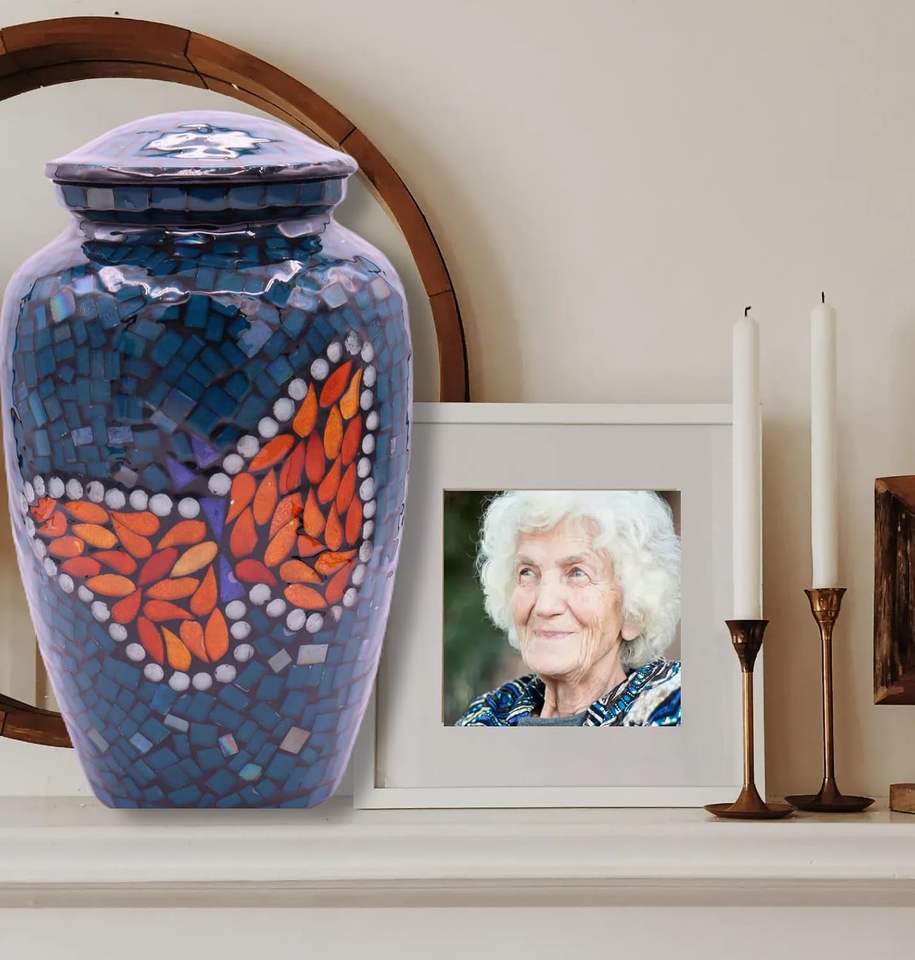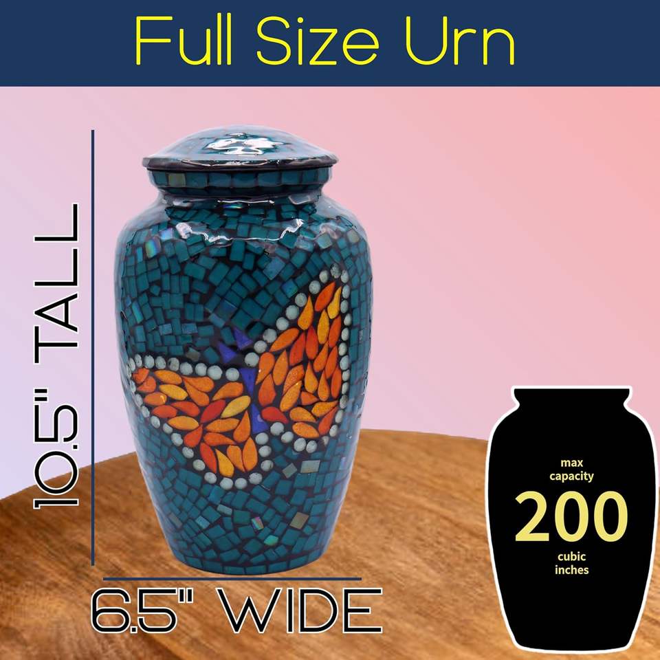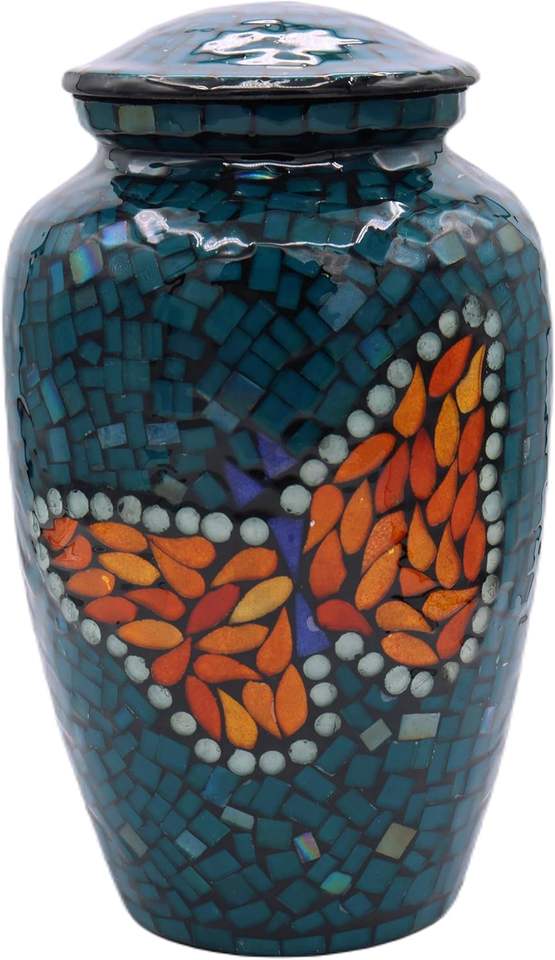 Urne funéraire en verre mosaïque moderne faite à la main Grande urne funéraire de taille adulte pour cendres humaines Tuiles individuelles appliquées à la main Sympathie