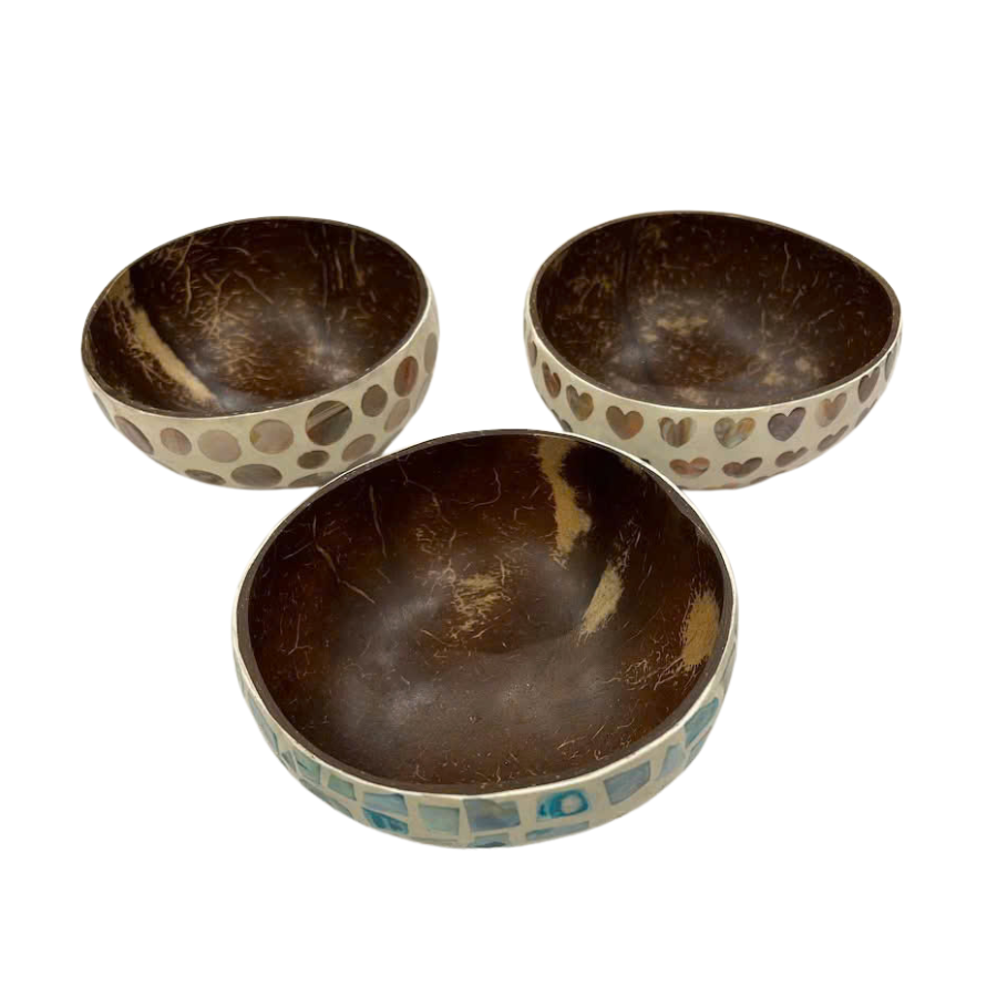 Bol de noix de coco incrusté de mosaïque avec nacre Vietnam Factory-Bol direct pour usage domestique, souvenirs et détaillants respectueux de l'environnement