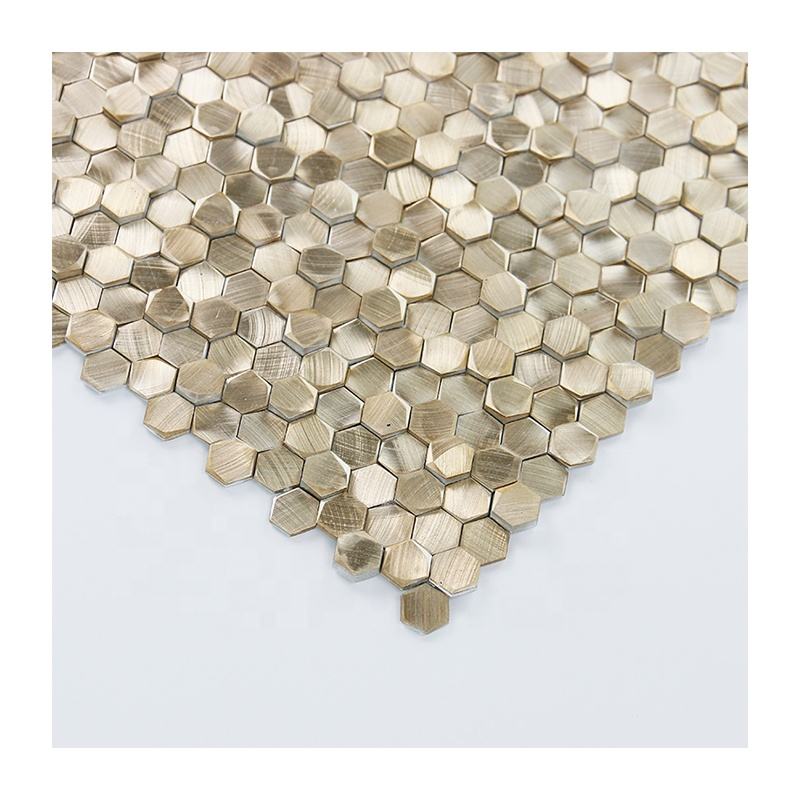 Carrelage de mosaïque or hexagonal D fond solide aluminium brossé de luxe mur dosseret carrelage en métal mosaïque stock liquidation