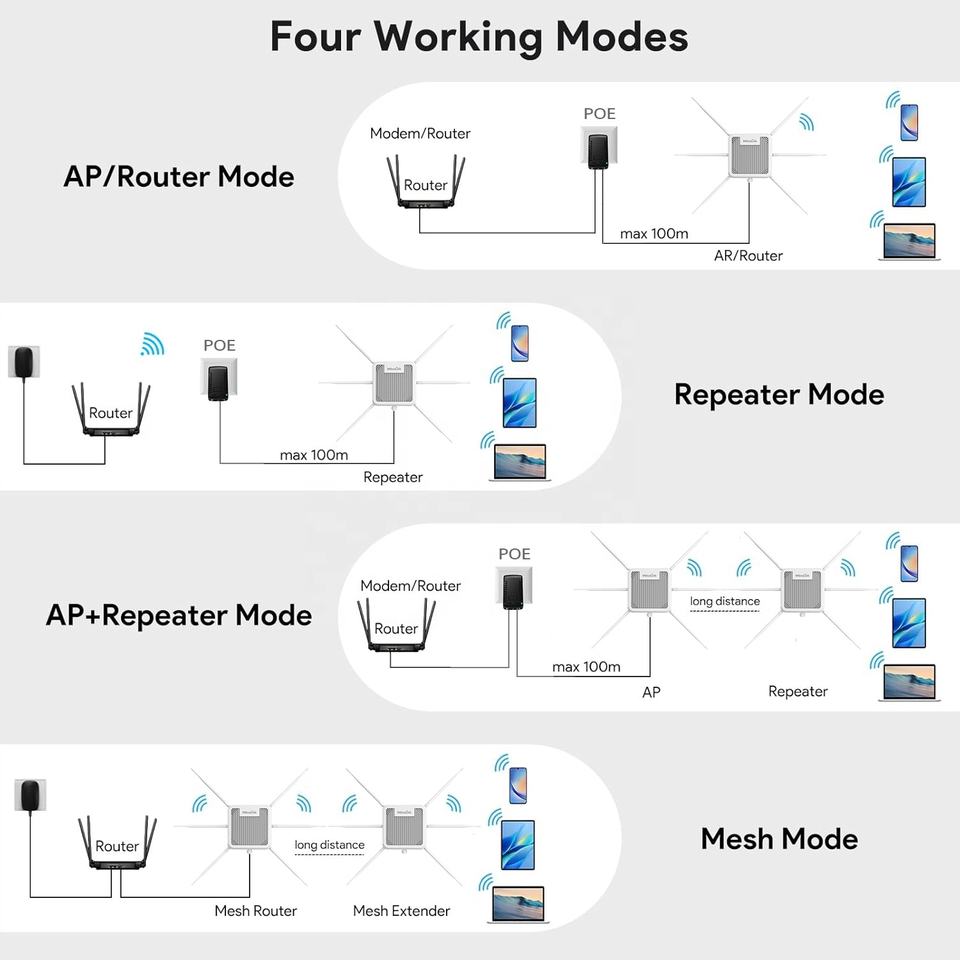 Mode de travail:Passerelle, point d'accès, répéteur, mode maillage