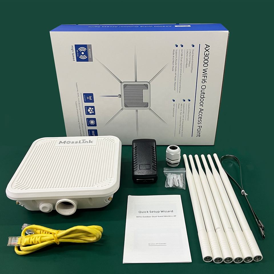 Point d'accès extérieur WiFi 6 double bande Mosslink Factory OEM ODM AX3000 avec 6 antennes omnidirectionnelles 7dBi, répéteur maillé longue portée pour la communauté