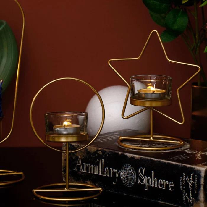 Lot de 2 bougeoirs en métal de différentes formes faits à la main pour la décoration.