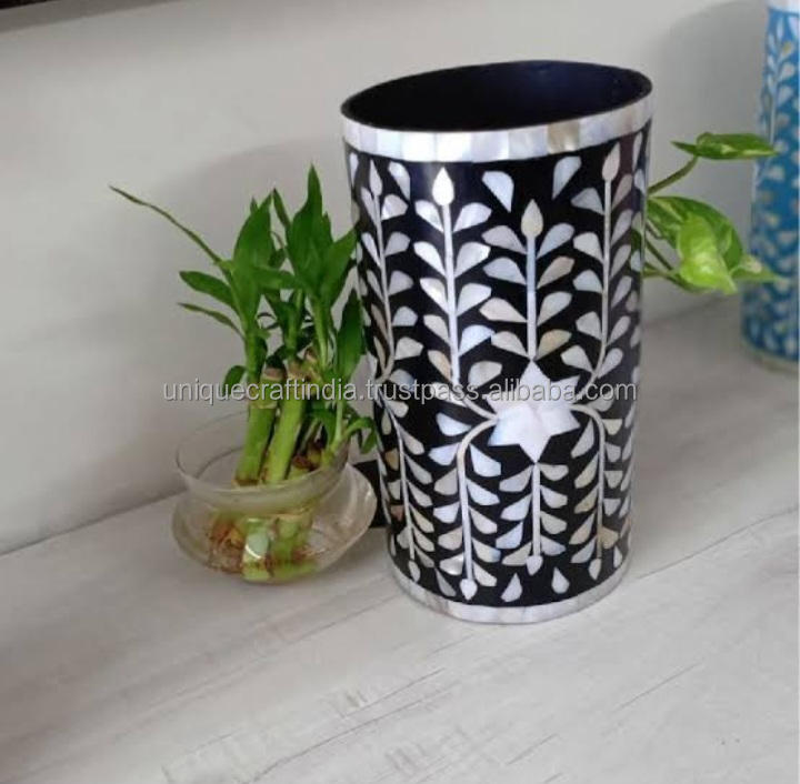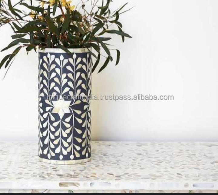 Pot de fleur en incrustation d'os le plus attrayant Vase à fleurs couleur noire et blanche à vendre meilleure qualité polie