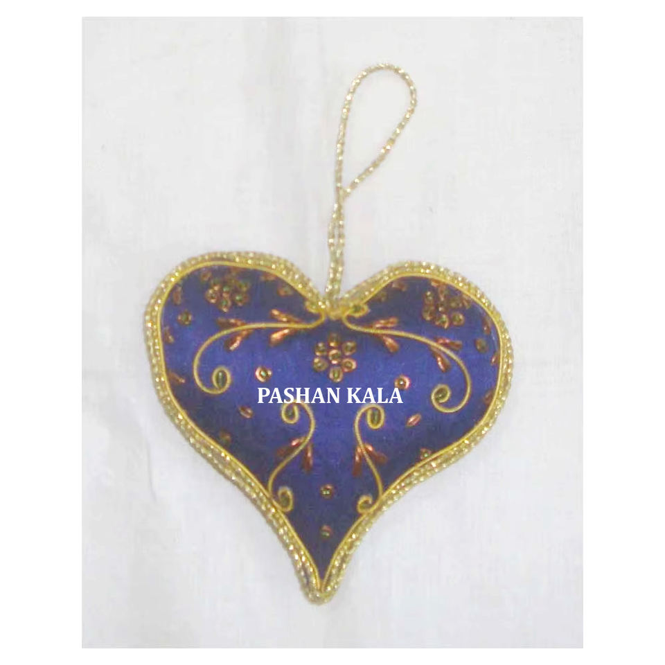 La plus attrayante broderie Zari arbre de Noël suspendu ornement en forme de coeur avec travail perlé utilisé pour la décoration de fête de Festival