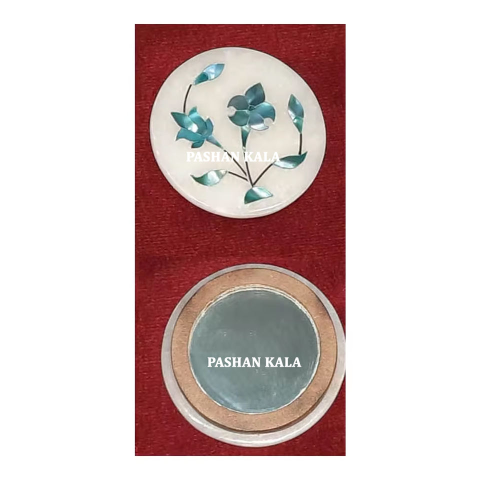 Très beau et exclusif marbre blanc de haute qualité avec incrustation miroir en nacre de couleur verte pour les cadeaux de mariage