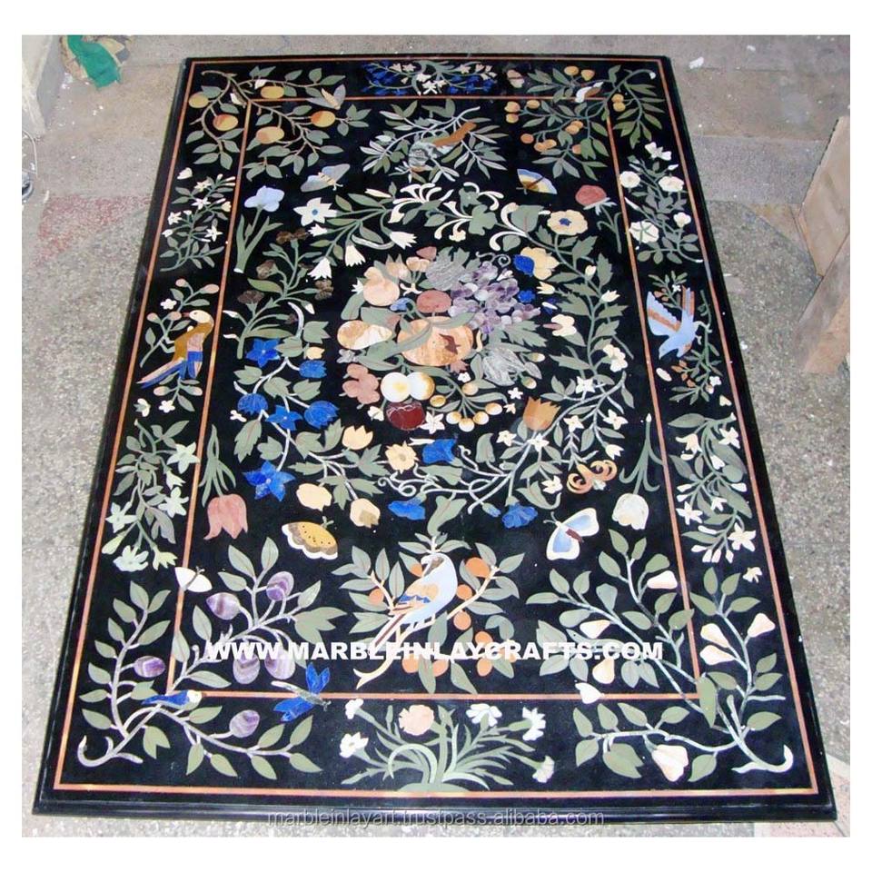 Plateau de table à manger en marbre noir avec incrustations florales, le plus beau design