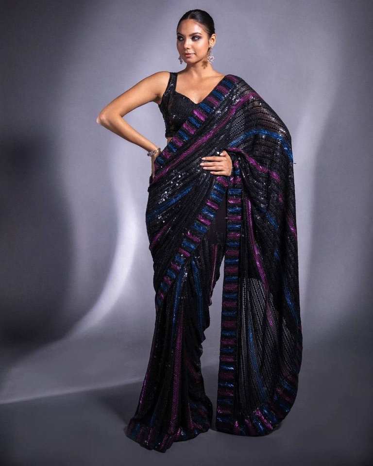 Nom du produit:Georgette Séquence Travail Saree Avec Chemisier