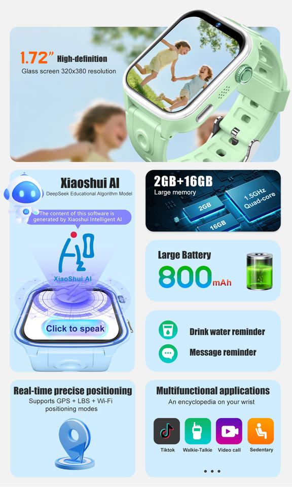 Montre connectée pour enfants S30, couleur verte magnifique, fine, 4G, GPS, dispositif de suivi, caméra 2MP, appel vidéo, téléphone-montre, Noël