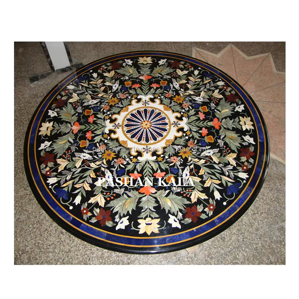 Planchers de table ronds en marbre noir de style indien, magnifiquement faits à la main, avec un design attrayant, pour table à manger