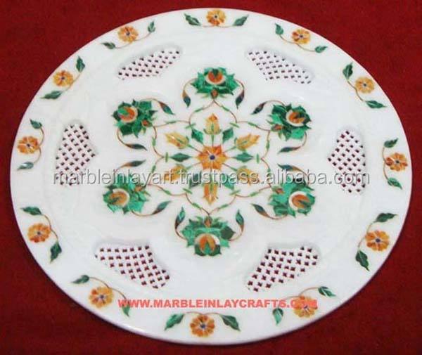 Plaque ronde d'incrustation de marbre blanc la plus belle avec une incrustation de conception de fleur de couleur verte pour un usage domestique et à des fins de cadeau