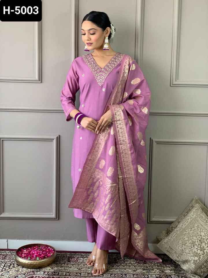 Costume de Salwar Kameez avec coton et soie avec tissage exquis Dupatta pour mariage