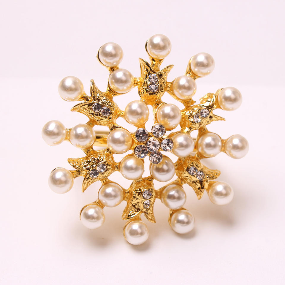 Anneaux de serviette classiques en métal et perles blanches les plus demandés, avec un design écologique et durable pour les événements de mariage