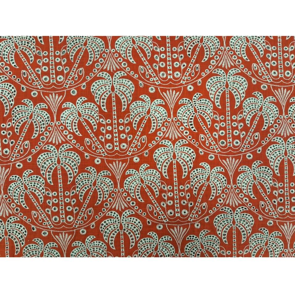 Red Cotton Palm Tree Schiffli Embroidered Fabric