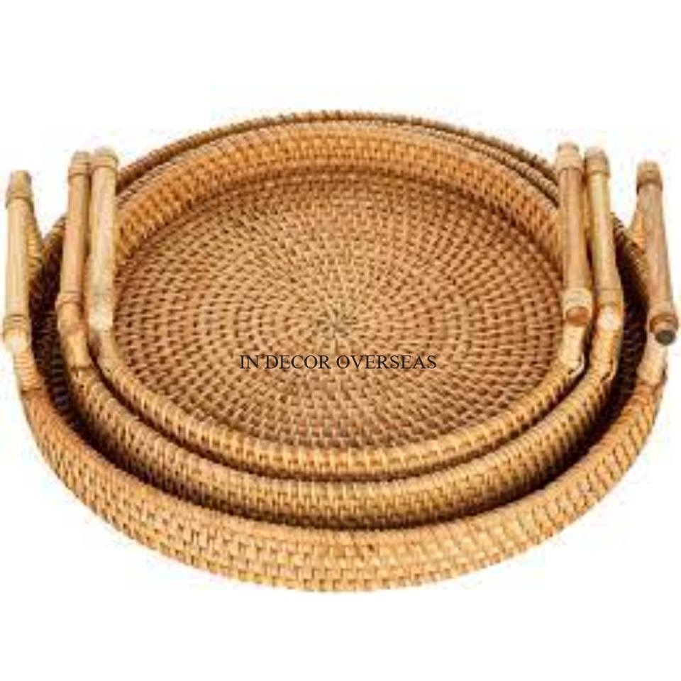 Les plus exigeants meilleure qualité rotin fait forme ronde aspect attrayant centre de table plateau de service de fabricant indien