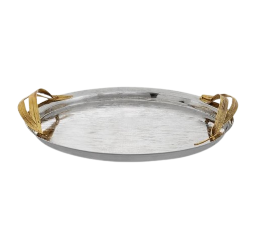 Plateau en aluminium à poignée en feuille d'or décoratif fait à la main le plus exigeant pour la décoration du salon disponible en différentes tailles