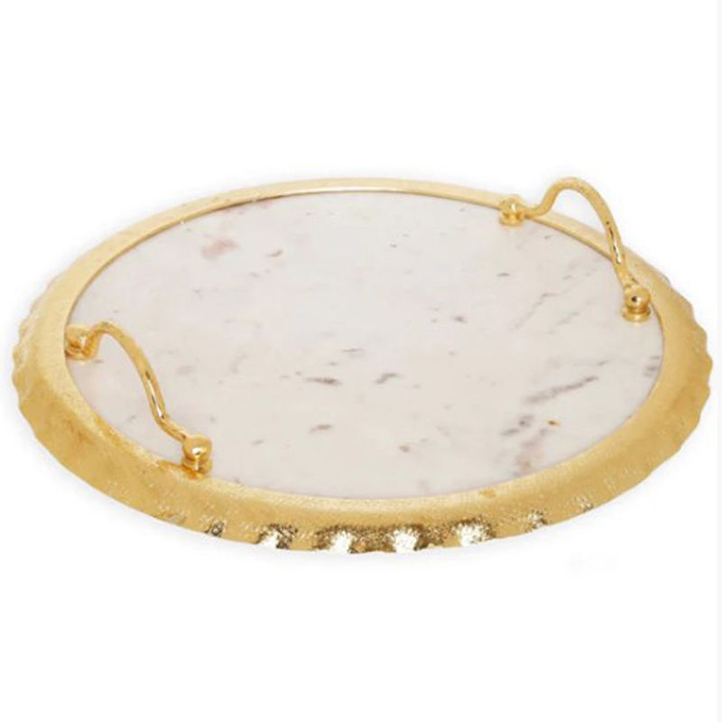 Plateau décoratif rond en acier, finition or antique, très demandé, meilleur prix, accessoire de cuisine et d'intérieur