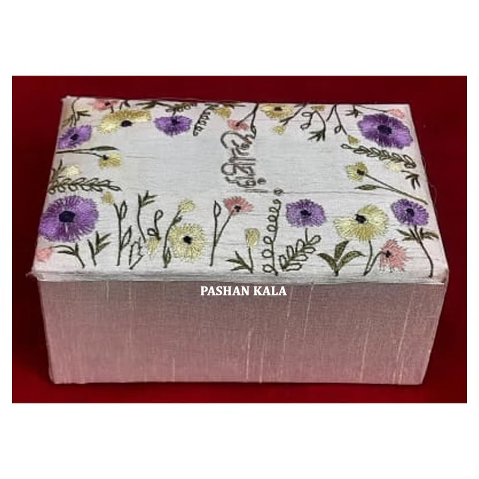 Boîte à bijoux rectangulaire très exclusive, faite à la main, de haute qualité, avec broderie Zari, pour les cadeaux de mariage.