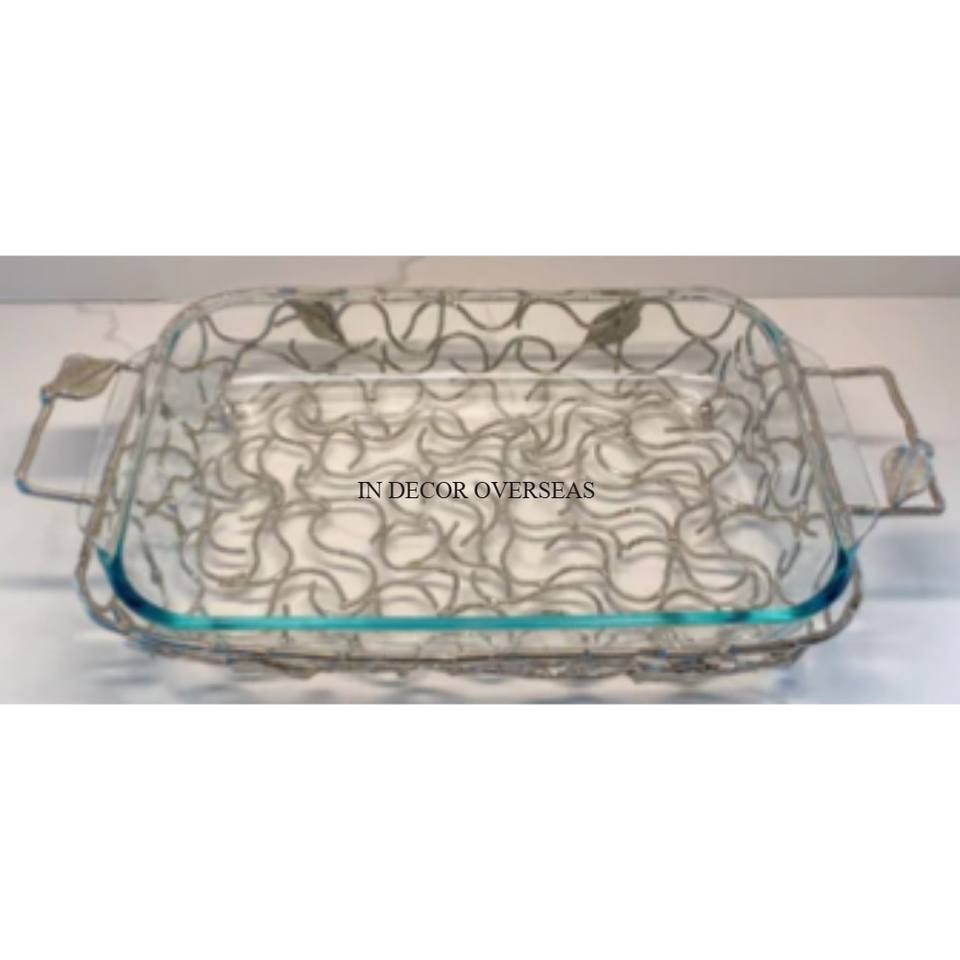 Bol en forme de rectangle en fil métallique et en acrylique de qualité supérieure avec poignées d'Inde
