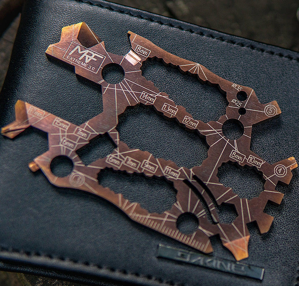 Portefeuille multifonction en acier inoxydable, format carte de crédit, avec plus de 50 fonctions