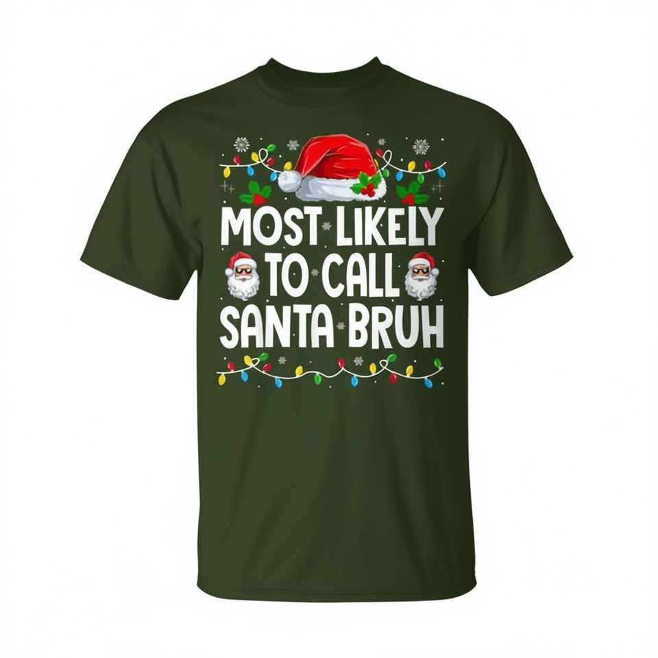 T-shirt à manches courtes unisexe pour adulte, col rond, imprimé numérique, Most Likely To Call Santa Holiday Superlative