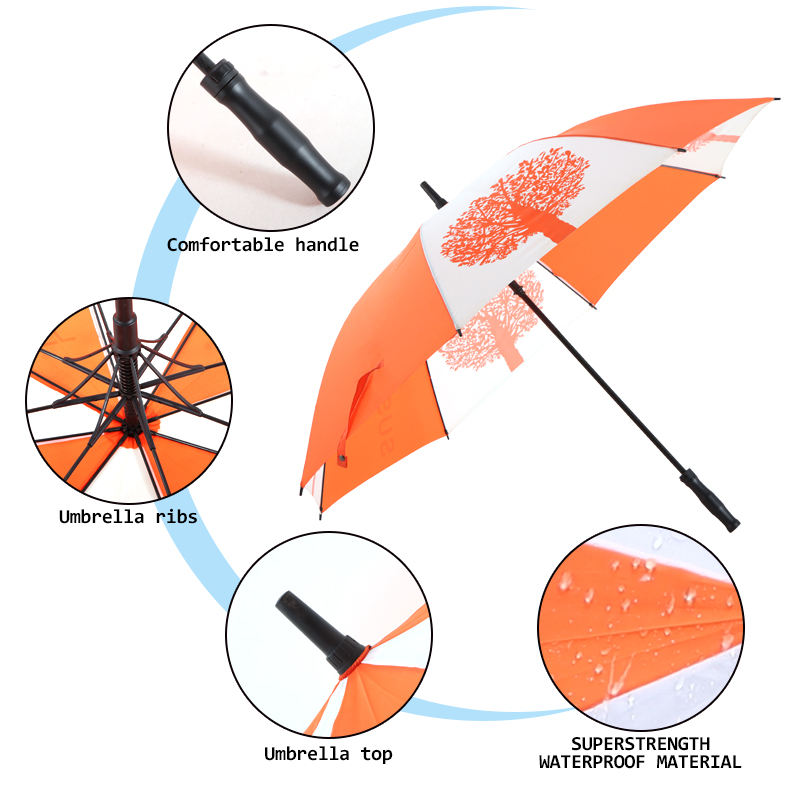 Parasol de golf le plus populaire de 60 pouces, tissu polyester orange coupe-vent avec logo personnalisé, parapluie de golf monocouche