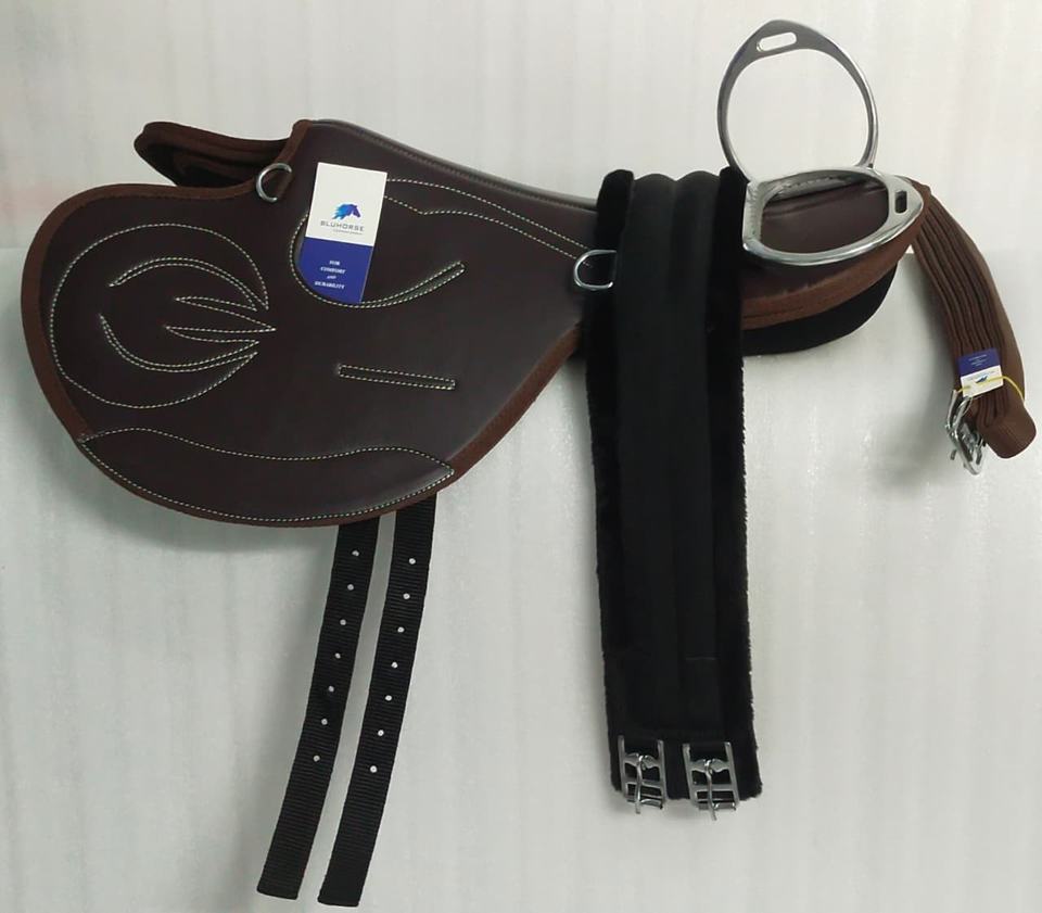 Most Popular BLUHORSE BH-1076 Durable Synthetic Exercise Race Saddle Complete Set 15-18 Inches All Colors English Equestrian